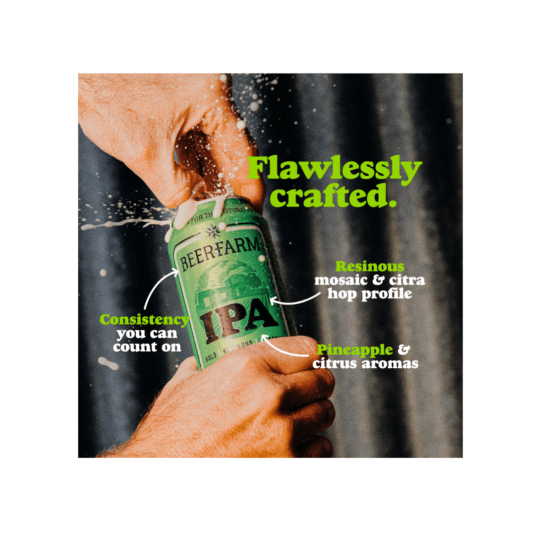 An American IPA with a rounded malt character and a resinous hop profile. Mosaic & Citra hops bring out a pineapple and stonefruit aroma, complemented by the citrus spice of NZ Motueka. Pleasant but assertive bitterness on the palate, balancing out a light toffee malt character. Our Beerfarm IPA is an award-winning, delicious beer!